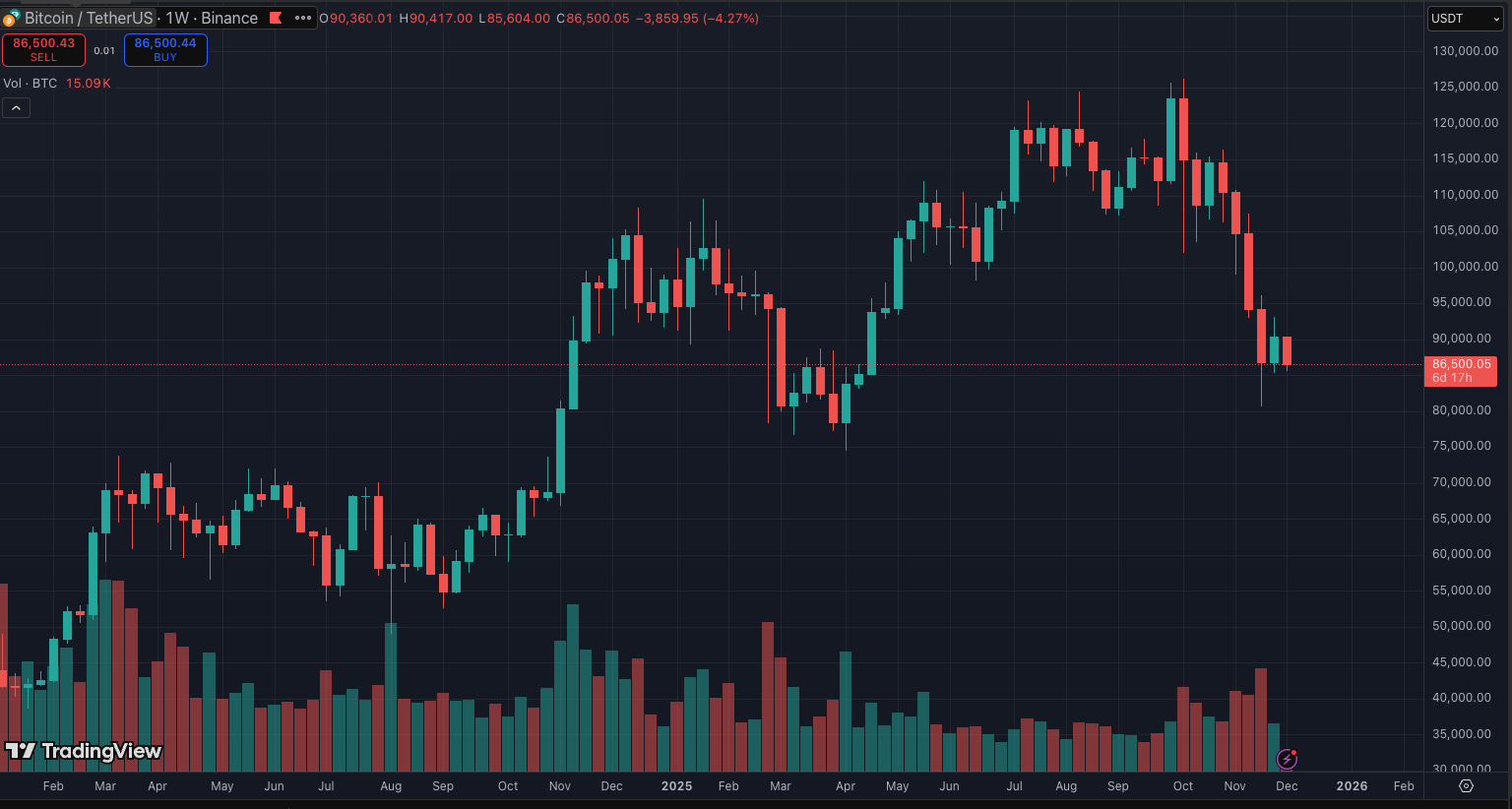 Bitcoin is moving through a macro-sensitive correction, not a structural breakdown. The next major catalyst: whether the Fed signals a December rate cut or sticks to tight policy.